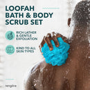 Luxurious Bathing Experience: Elevate your shower routine with our extra-large, bright blue loofah mesh body scrubbers. Enjoy a spa-like experience in the comfort of your own bathroom.