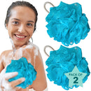 Loofah - Bath Body Scrub for Women and Men - Set of 2 XL 90g Blue Mesh Poufs