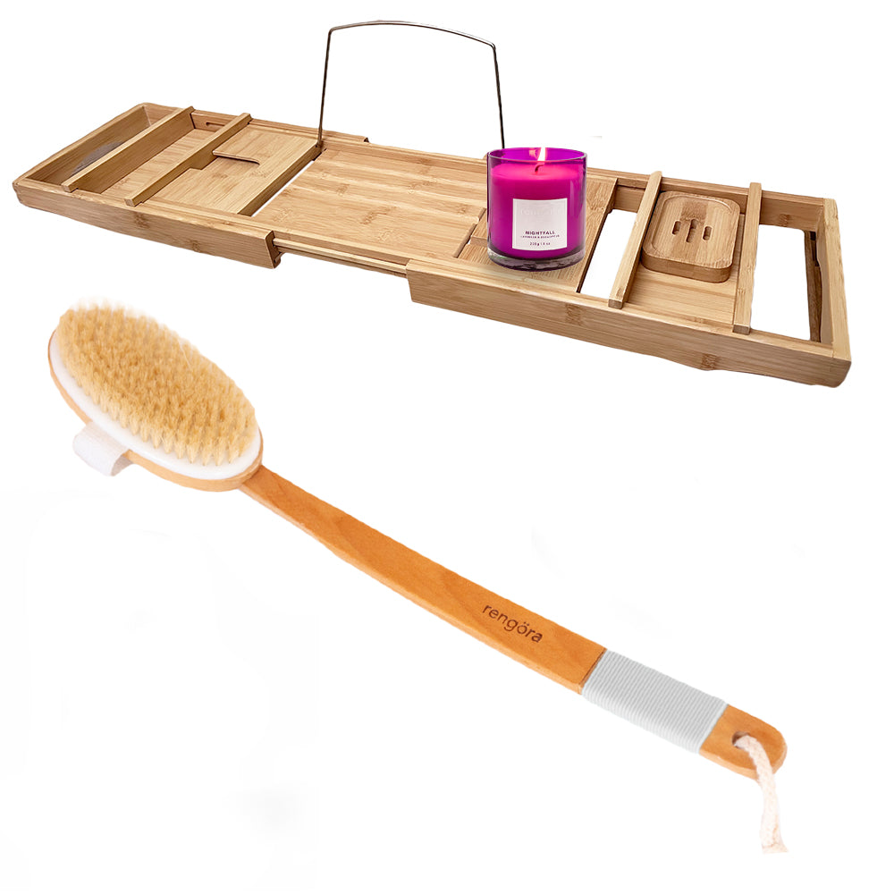 1. ✨ Our 20" Extra Long Wooden Curved Bath Brush (with Detachable Brush Head): Designed to reach every inch of your body with ease, this extra-long bath brush allows you to pamper yourself effortlessly. The detachable brush head ensures easy cleaning and maintenance, making it the perfect addition to your self-care ritual.
