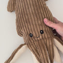 Crafted from ribbed caramel corduroy with a soft cream underside, this friendly squid brings warmth, texture, and personality to any space.