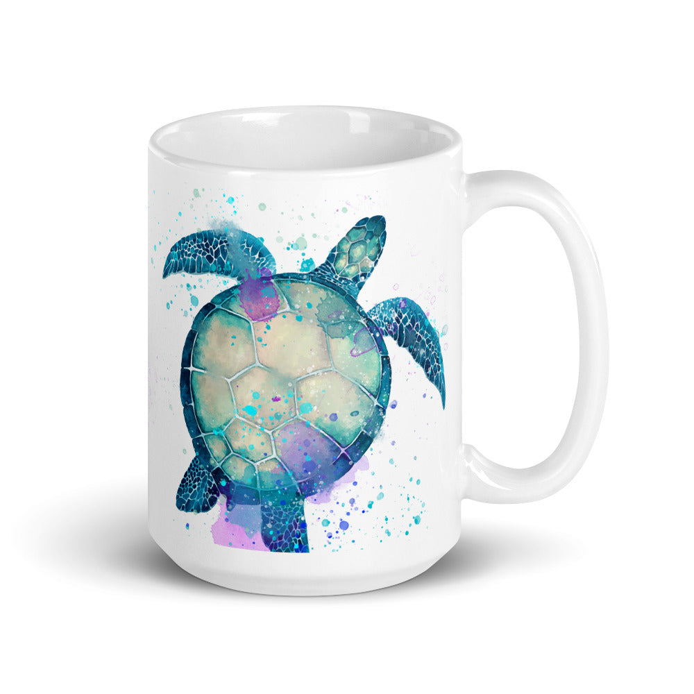 Whether you're drinking your morning coffee, evening tea, or something in between – this mug's for you! It's sturdy and glossy with a vivid and playful watercolor sea turtle print that'll withstand the microwave and dishwasher....