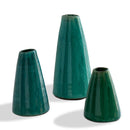 Brighten your kitchen or living room with this exquisite set of three unique artisanal vases in softly glowing shades of aqua with a sophisticated crackle finish. Perfect for single stems or small groupings of foliage or dried flowers.