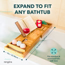 Bamboo Bathtub Tray, Expandable to 43", Fits Large and Standard Tubs, Holds Wine Glass, Tablet, Phone, Book